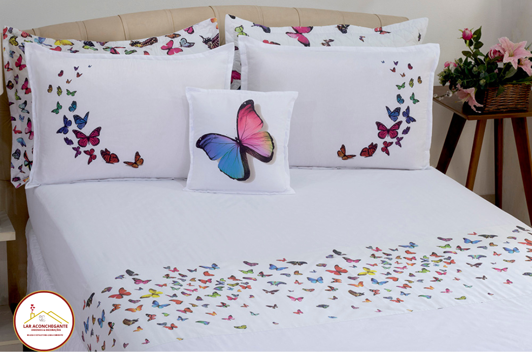 "Jogo de Lençol 04 Peças Estampa Digital Borboleta