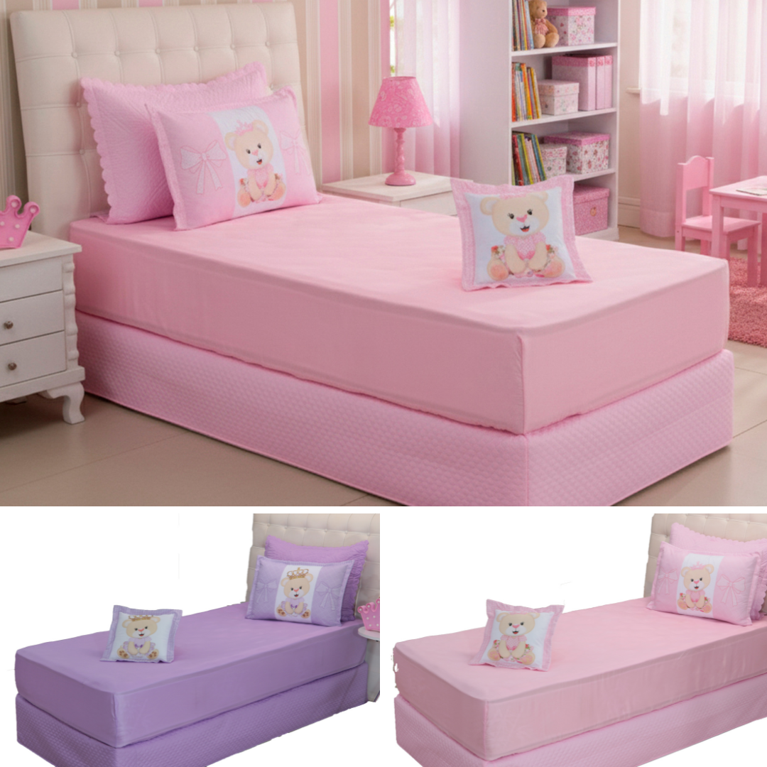 Deixe o quarto ainda mais encantador e acolhedor com o delicado tema Princesa Ursa! Perfeito para crianças que amam um cantinho fofinho e cheio de imaginação, esse jogo de lençol transforma a cama em um verdadeiro mundo de sonhos e histórias mágicas.
