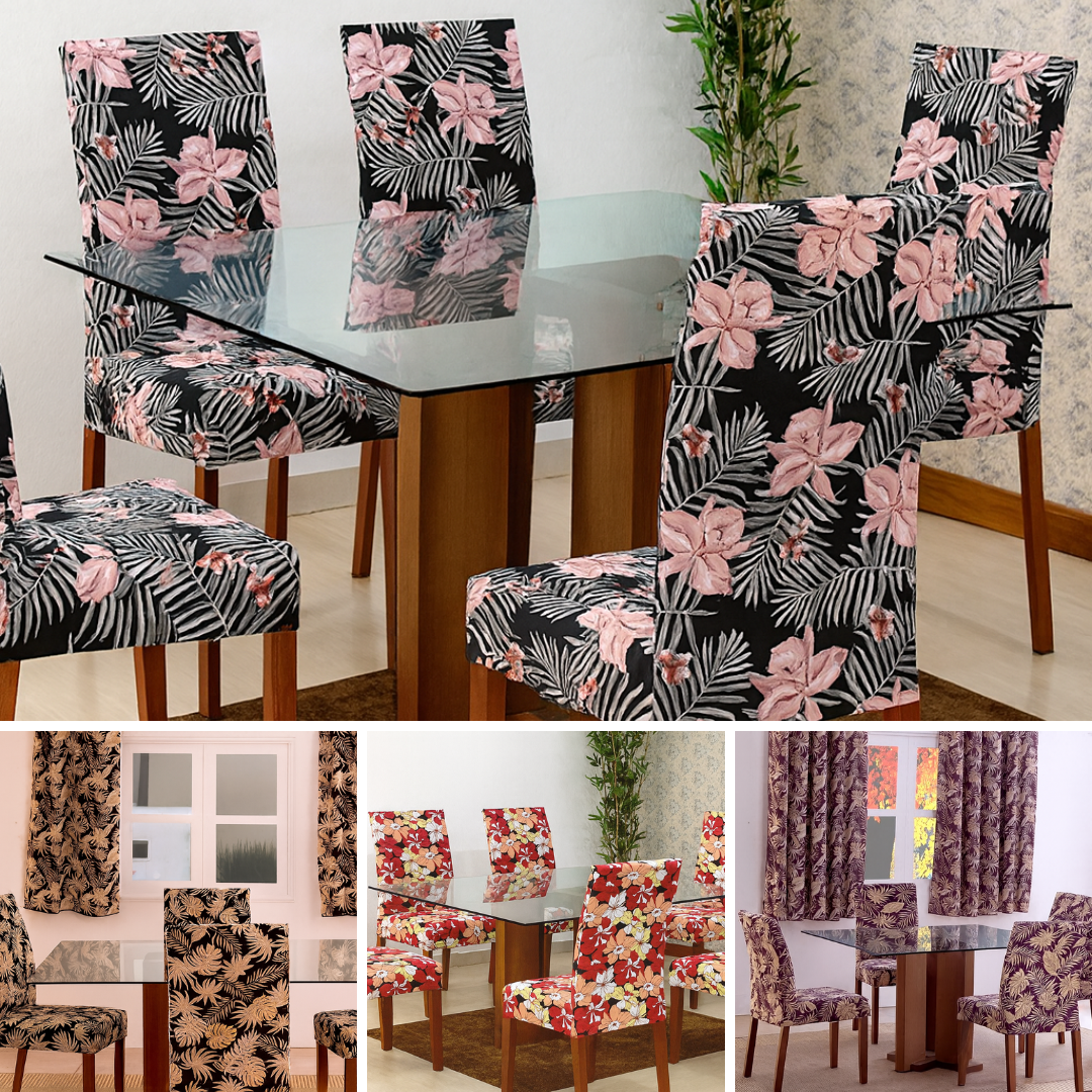 Transforme sua sala de jantar com o charme e a funcionalidade das Capas Protetoras de Cadeira Floral . Feitas em malha gel 100% poliéster, elas oferecem elasticidade, toque macio e um caimento perfeito, valorizando cada detalhe das suas cadeiras.