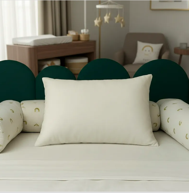Confeccionado em tecido micropercal 200 fios, possui toque extremamente macio e delicado, semelhante a pluma, ideal para a pele sensível do bebê. Seu enchimento siliconado hipoalergênico garante leveza, sustentação suave e maior respirabilidade, auxiliando em noites tranquilas e seguras.